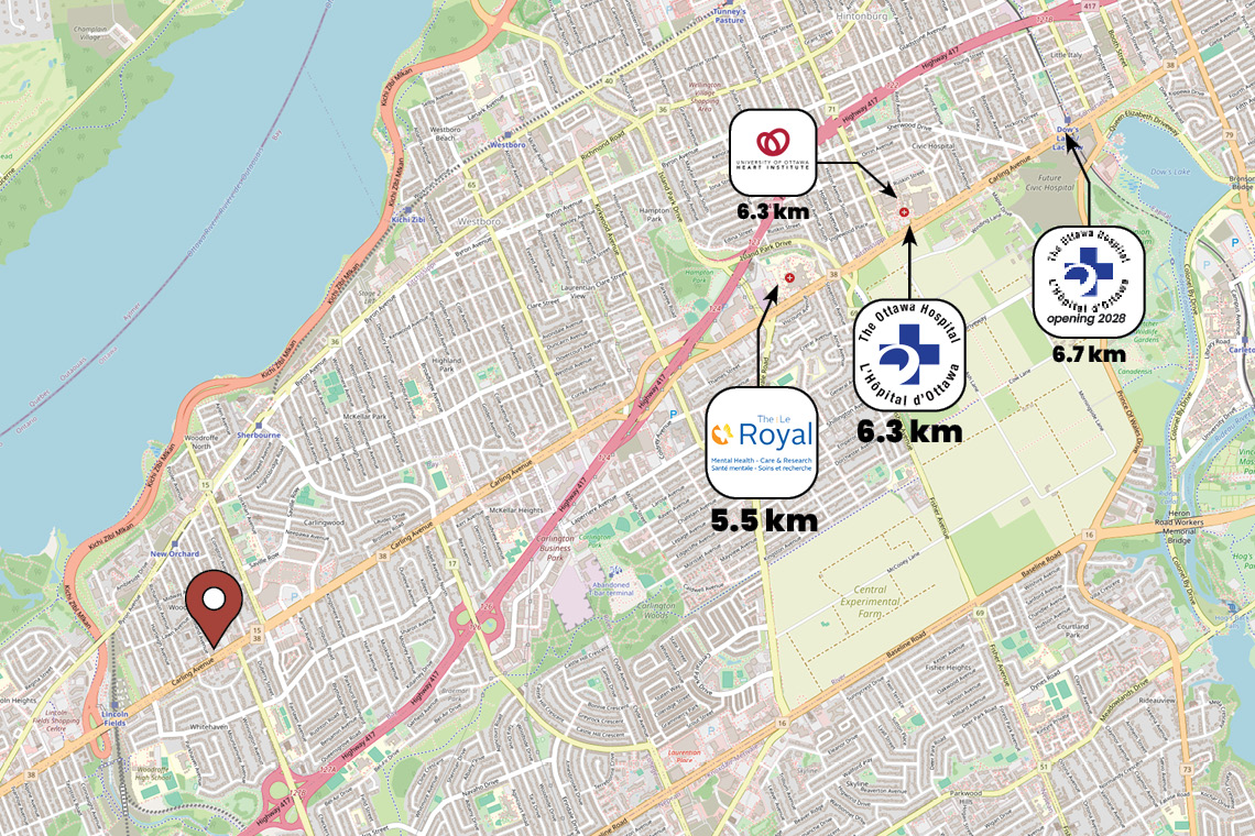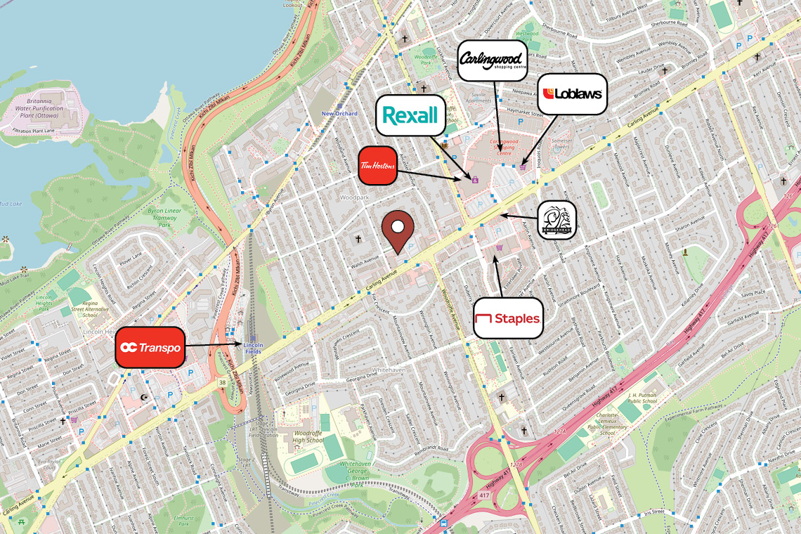 Situated at the intersection of Carling Avenue and Woodroffe Avenue, with direct access to Highway 417—ideal for commuters from both downtown Ottawa and Kanata. Just a short walk to Lincoln Fields Station.