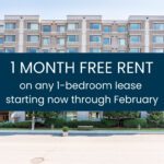 Now offering one-month rent free on any 1-bedroom lease starting now through February!